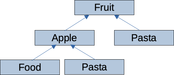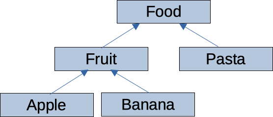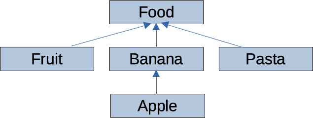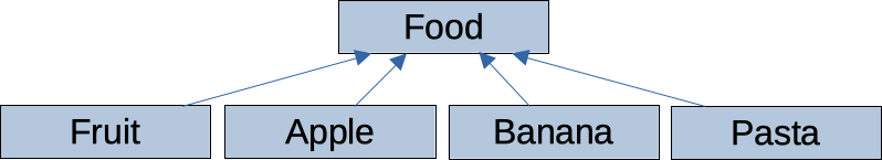 The correct answer is d. The arrows in the class diagram indicate the "is-a" relationships between the superclasses and subclasses: Fruit and Pasta both inherit from ("extend") Food, and Apple and Banana inherit from Fruit.